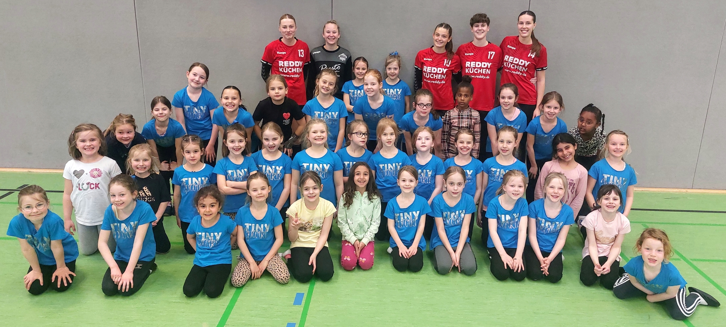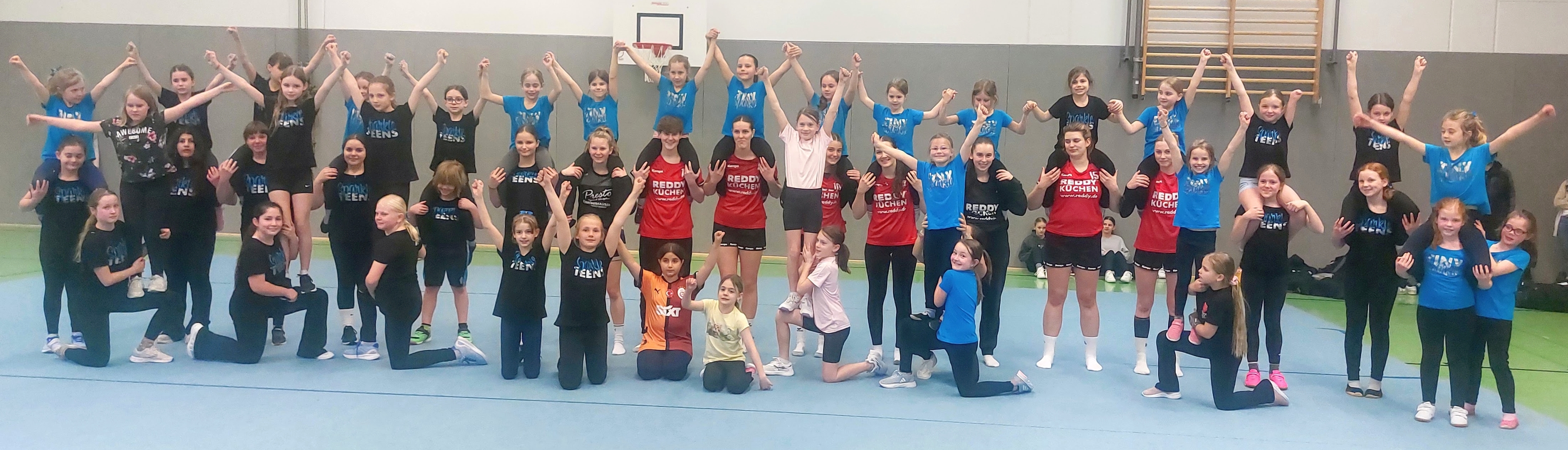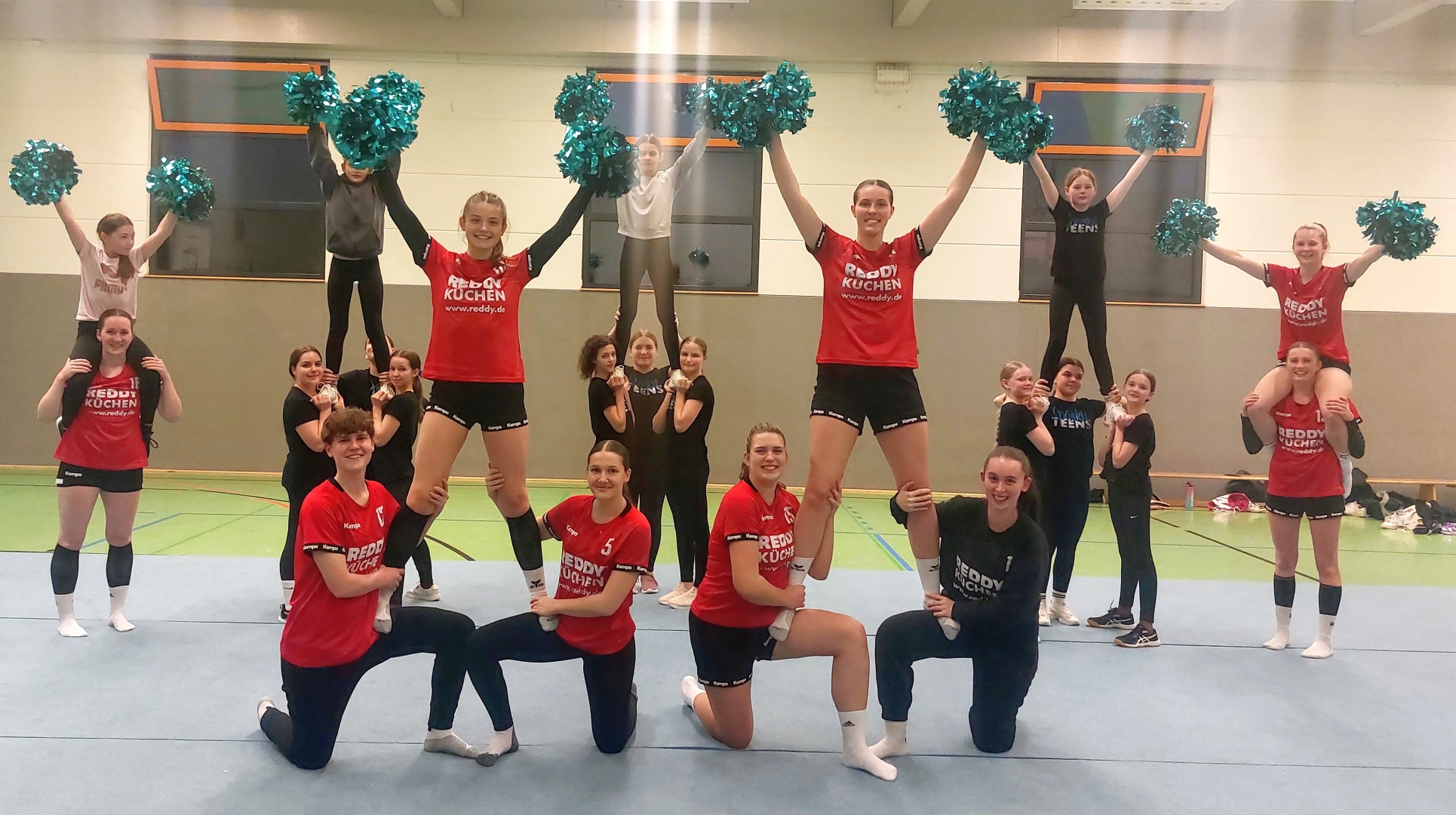 Zum Saisonabschluss folgte dann die Überraschung der Handballerinen an die Cheerleader, da diese selbst einmal in die Welt von Tanz, Akrobatik und Turnen eintauchten. Und so nahmen die Spielerinnen an Trainingseinheiten aller vier Cheerleader-Gruppen teil – ein Perspektivwechsel mit Überraschungspotenzial: Beeindruckt vom hohen Niveau der jungen Tänzerinnen, zeigten die Handballerinnen selbst ungeahnte Talente. Erste Hebefiguren gelangen bereits nach kurzer Zeit – der Spaß war auf beiden Seiten riesig.