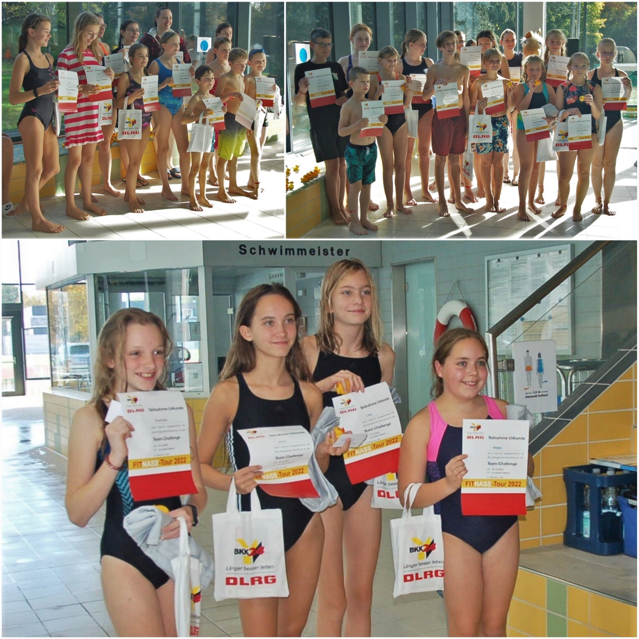 Stellvertretend für das gesamte Schwimmteam des Ehringshäuser Turnvereins haben „Die sauren Gürkchen“, „Vier gewinnt“ und „Die Paluten“ vollen Einsatz bei der sogenannten „Fitnass-Tour, die das DLRG Wetzlar gemeinsam mit der BKK24 ins Leben gerufen hatte, gezeigt.