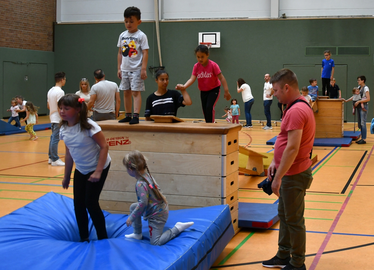 Mitmachen und Ausprobieren hieß es dann den Tag über verteilt bei den Kinderturnern, den Einradfahrern, den Handballern und Badmintonspielern oder bei den Ju-Jutsu-Kämpfern.